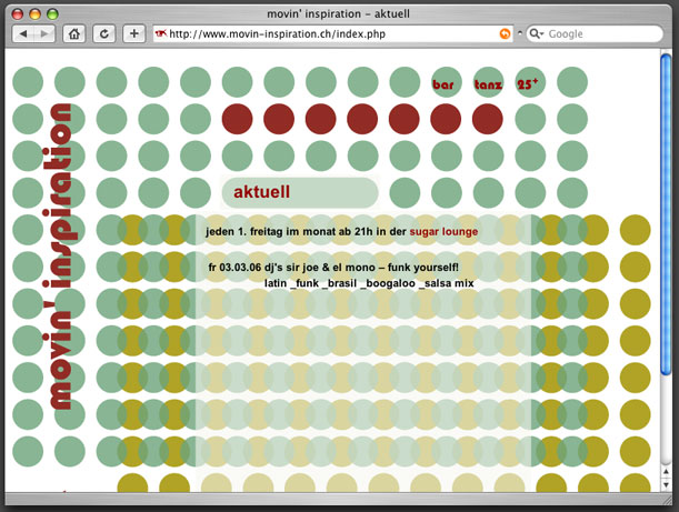 movin' inspiration ist ein Party Label, das Tanzveranstaltungen für erwachsenes Publikum anbietet. Die Events finden ein-/zweimal monatlich an wechselnden Orten statt.